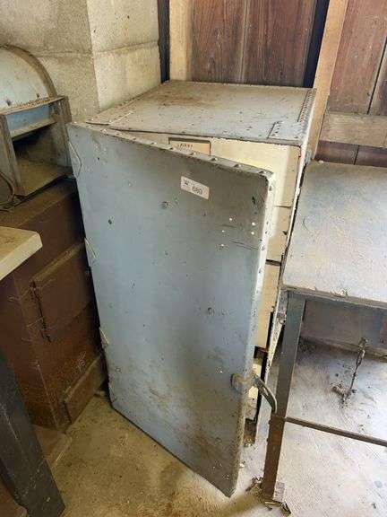 LOT 680 - Metal cabinet 20”x24”x41”H with 6 wood drawers