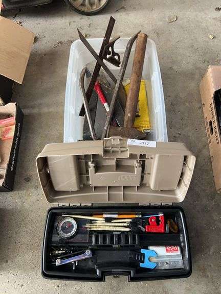 LOT 207 - Tool Box w/ misc Tools and Pry Bars