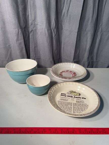 LOT 123 - 2 Blue Crock Bowls and 3 Pie Pans