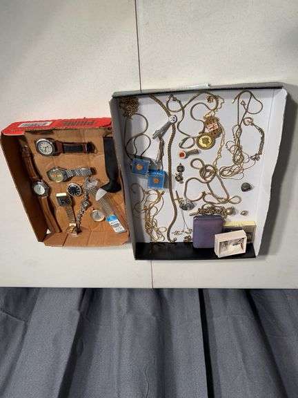 cuff links, necklaces, some necklace gold plated, wrist watches and others